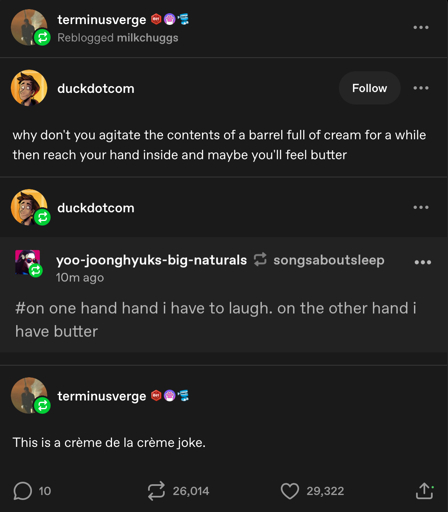 Tug@lemmy.worldEnglish · 17 days agoI went to buy a wig the other day...plus-squaremessage-squaremessage-square0linkfedilinkarrow-up11arrow-down10