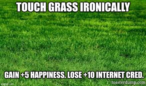 arrow-up11arrow-down1imageTouch Grass media.piefed.socialToasterBotnet - Productivity and Memes@piefed.socialEnglish · 7 days agomessage-square0linkfedilink
