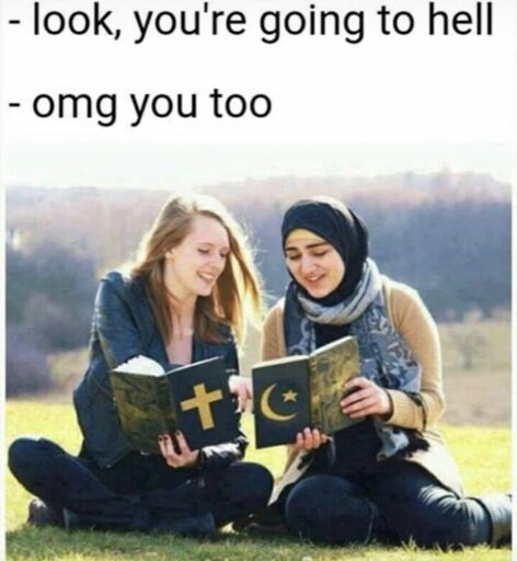 minus-squareD_C@sh.itjust.workslinkfedilinkarrow-up20·1 month ago“Wait. I’m going to your hell? …haha, checkmate, I don’t believe in your hell!!” “Wow, me too! Let’s go and fuck some shit up!”