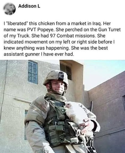 So he stole a chicken, which is actually a war crime, and he’s just casually admitting it on social media. Says a lot about the state of the world at the moment.