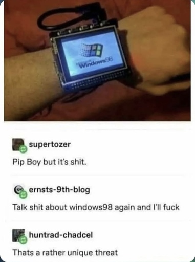 minus-squareDWANG05@feddit.onlinelinkfedilinkEnglisharrow-up2·2 months agoI took it as threatening to screw the Device.