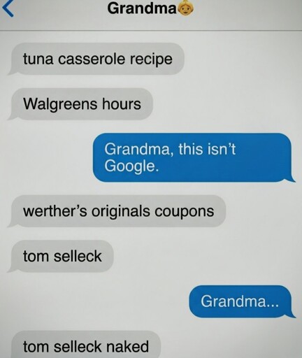 arrow-up160arrow-down1imageGranny Googlemedia.piefed.worldno banana@piefed.world to Lemmy Shitpost@lemmy.worldEnglish · 21 days agomessage-square11linkfedilink