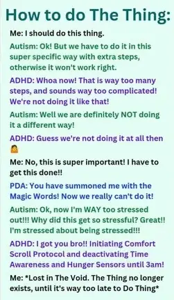 I’m adhd and my partner is Audhd and our house is both a chaotic mess of unfinished tasks, and a well organized abode.
