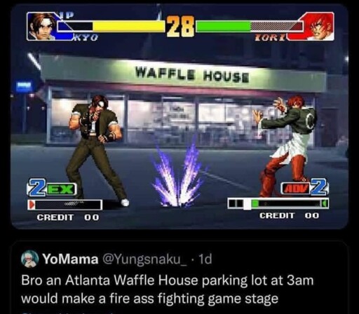 minus-squaresfxrlz@lemmy.worldlinkfedilinkarrow-up9·1 month agoOver here that would be gas stations, and the fighters are middle aged guys with a beer belly