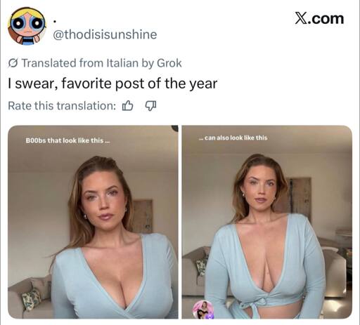 minus-squareMerryJaneDoe@lemmy.worldlinkfedilinkarrow-up4·5 days agoYeah, it makes me think that I much prefer the one on the right. I am not a fan of silicone. Or bras, for that matter.