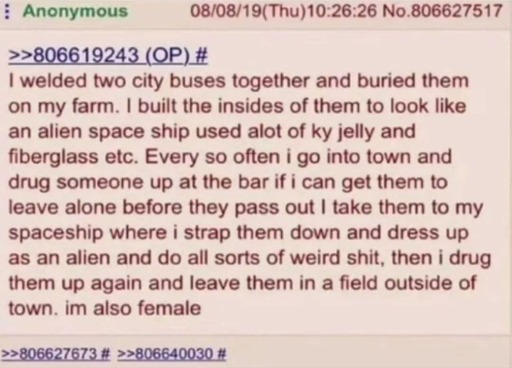 All the alien anal probe stories just guys embarrassed about enjoying a minor pegging.