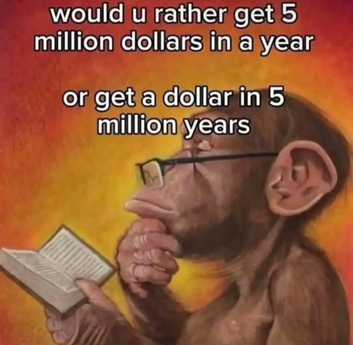 I mean… With inflation, that dollar in 5 million years might actually be worth more than 5 million dollars haha! /jk