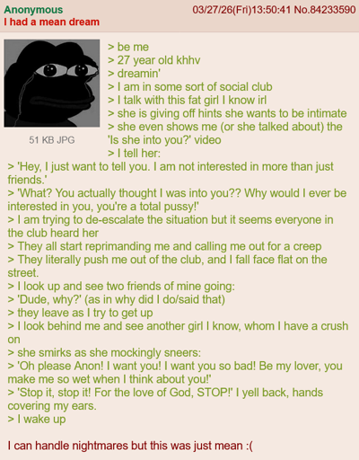 I can fully believe that incels have programmed themselves to the level of having dreams like this