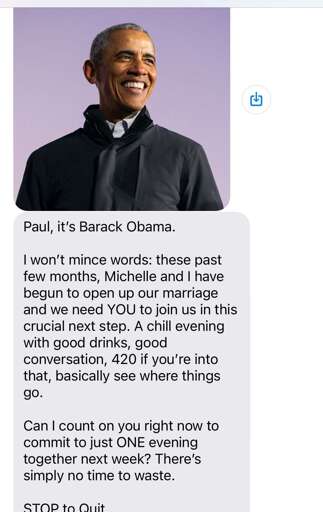 I am so tired of political spam texts. Now they’re political spam sexts.