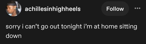 Alt text: social media post that says “sorry I can’t go out tonight I’m at home sitting down.”