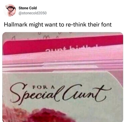 That’s because it’s an untapped market. I don’t know how many times I’ve gone into a Hallmark Store, and found myself completely unable to find any card to send to a special cunt. And then, when I ask the workers, they act like they don’t have that sort of card at all.