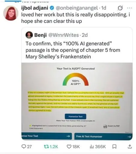 Yeah, or perhaps there is no need to make up excuses for the Copyright Infringement, world bruning, infinite lying machine lying about what text is real vs generated by it. LLMs lie, LLM based LLM detectors lie about lies.
