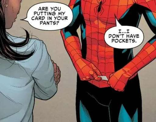 The live action Spiderverse had a hilarious moment where the other Spideys were absolutely horrified by seeing one of the biological web shooters (Maguire)
