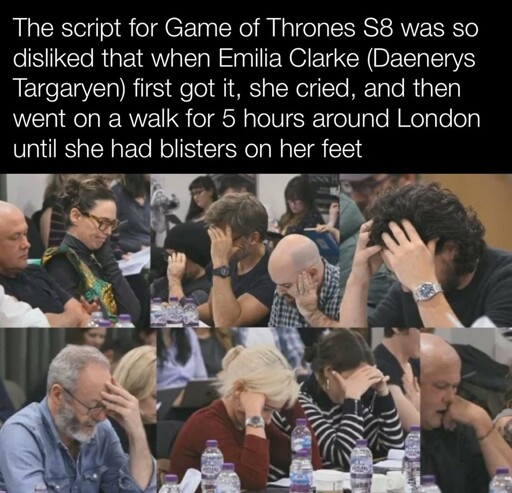 I believe that the way the show ended was a horror fun house mirror of the true ending that George had planned for decades. They fucked it because they are retarded and lazy. I cannot imagine anything more heartbreaking as a writer with the perfectionism and self doubt that George has to see my big ending with Dany going mad, Jaime and Cersei dying in each other’s arms and Bran becoming the king of the north being done so terribly and being recieved with so much hatred from the fans.