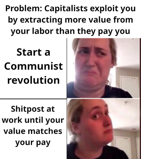 The top comment doesn’t really work, because even if workers pooled the money together, shareholders or execs might refuse to sell their shares if they are expecting it to grow and pay them out more in the future. Buying up companies to turn into coops doesn’t work (except for failing/bankrupt companies), because it takes capital to do that, which workers don’t have by definition.