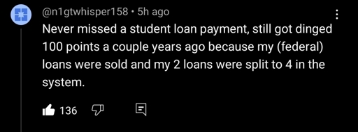 minus-squarerealitaetsverlust@piefed.ziplinkfedilinkEnglisharrow-up1·1 month agoNot paying a financial institution might be the worst advice you could give. That’s like not paying the mafia. Don’t take a student loan in the first place.