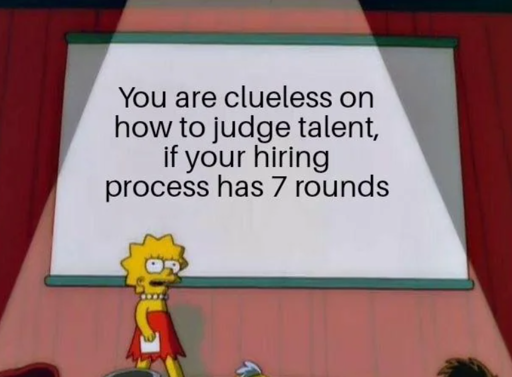 During the pandemic, interviews seemed to have endless rounds of ridiculous questions. There needs to be a law that interviewers need to pay you at the position’s rate for anything beyond 2 hours. It would eliminate so much bullshit.
