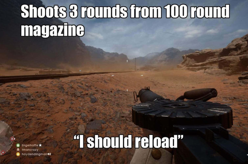 minus-square87Six@lemmy.ziplinkfedilinkarrow-up2·6 days agoNew bf* You can die in 3 shots from automatic weapons in bf1