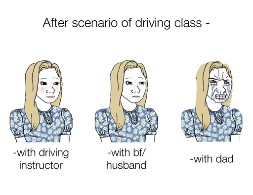 Lol yeah my father teaching me to drive is why sister chose not to learn