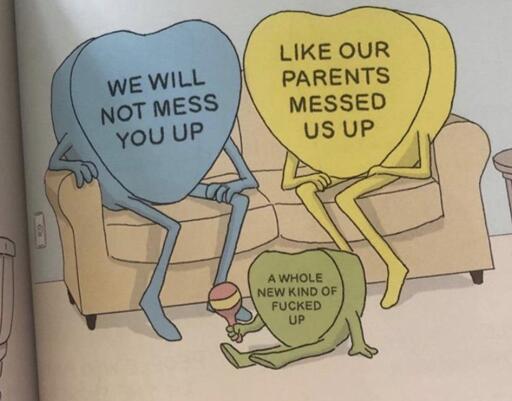 You can’t avoid being fucked up in some way as a kid or fucking up your kid in some way as a parent. We’re all imperfect people in an imperfect world, so something and someone are bound to get fucked up.