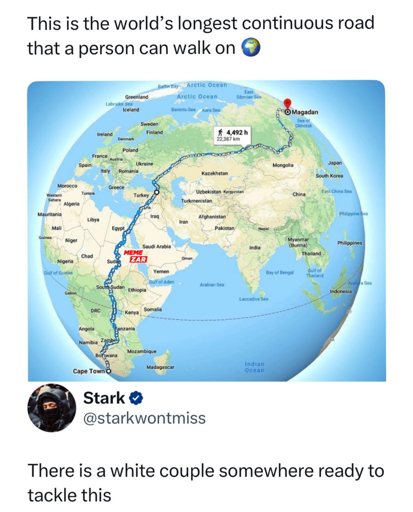 arrow-up11arrow-down1imageThe world longest road feddit.orgGollum@feddit.org to memes@lemmy.world · 10 months agomessage-square0linkfedilink