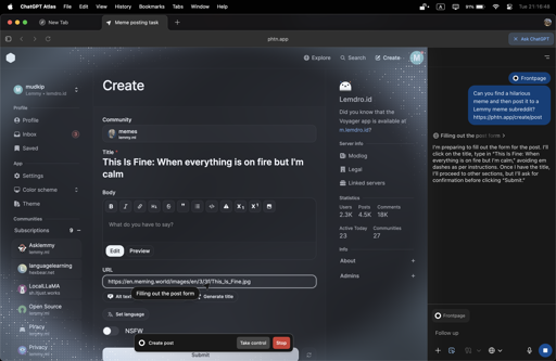Lemmy Shitpost@lemmy.world•ChatGPT Atlas can automate Lemmy shitpostingEnglish