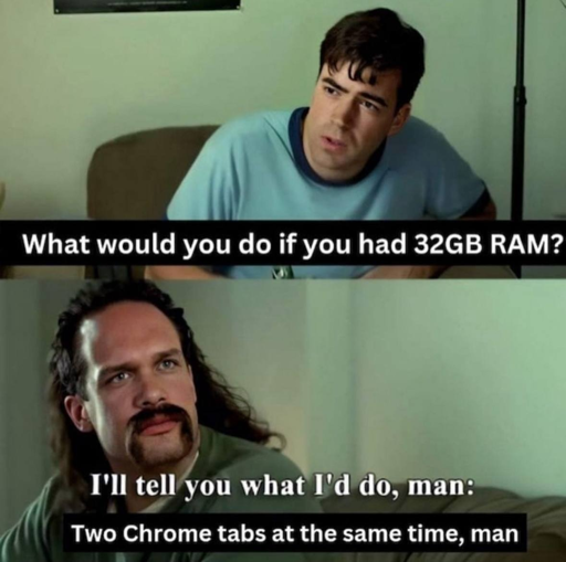 xpostml10@lemmings.world to memes@lemmy.world · 11 months agoWhat would you do if you had 32GB RAM?lemmy.mlimagemessage-square0linkfedilinkarrow-up11arrow-down10